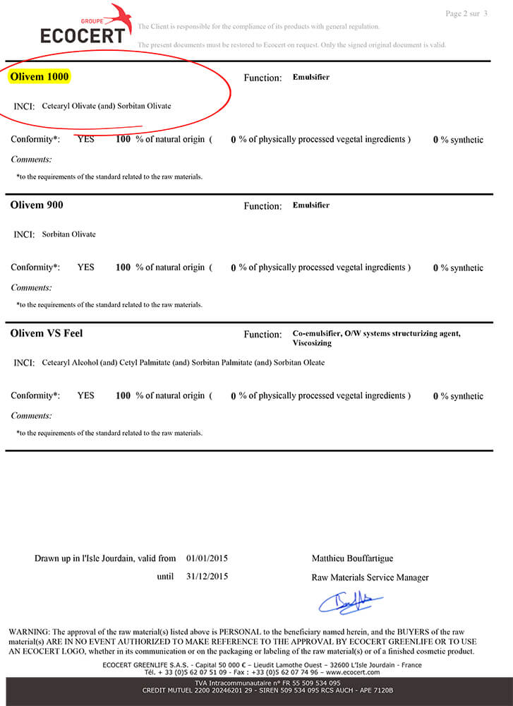 В основу кремов с биозолотом входит натуральный эмульгатор Olivem 1000 ( эко статус: Cosmos), синтезированный из сырья растительного происхождения.