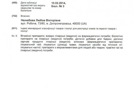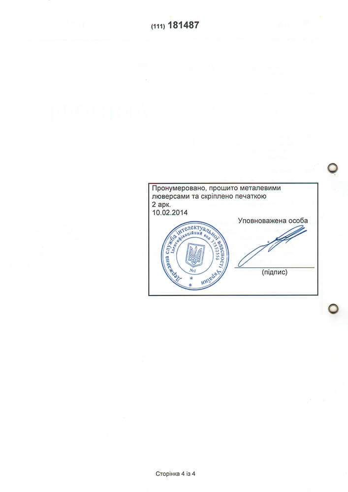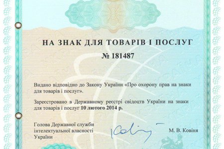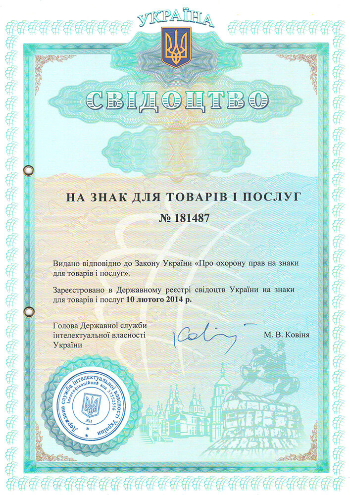 Видано відповідно до Закону України “Про охорону прав на знаки для товарів і послуг”.