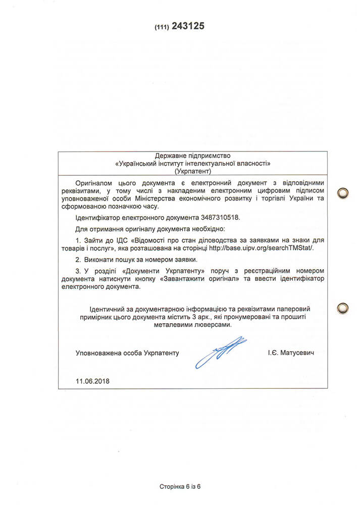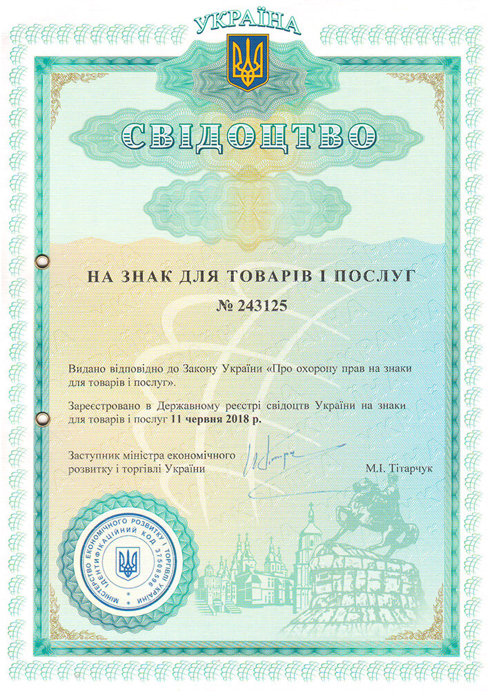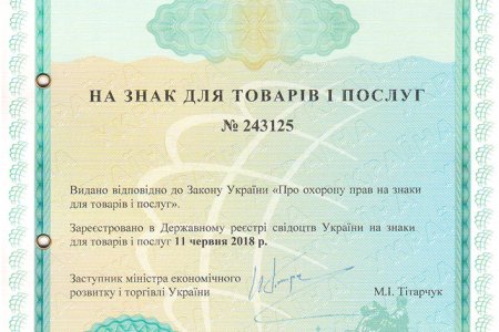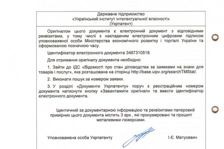 Видано відповідно до Закону України “Про охорону прав на знаки для товарів і послуг”.