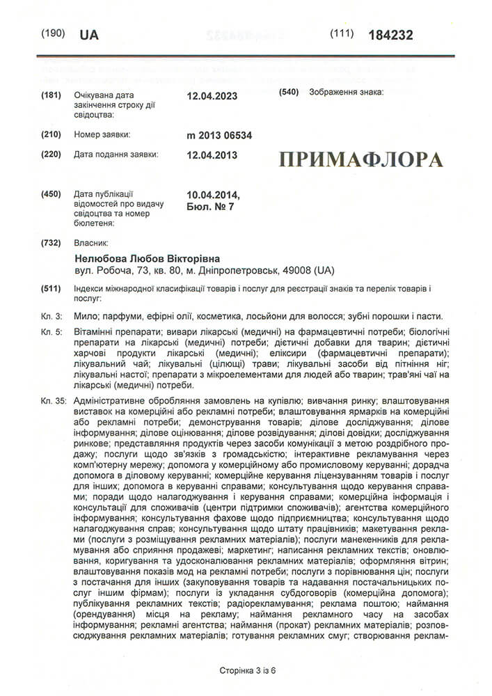 Ексклюзивне право на використання ТМ “ПРИМАФЛОРА” належить засновнику ТОВ “КЛУБНА СИСТЕМА “НОВЕ ЖИТТЯ” Нелюбовій Любов Вікторівні. І може бути використане, в рамках чинного законодавства, лише даною компанією, а також її партнерами.